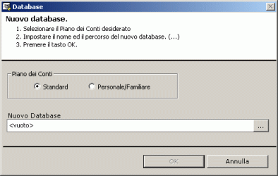 per selezionare la cartella dove posizionare il nuovo database e digitarne il nome (Es.: Contabilità familiare 1 e premere il pulsante OK.
