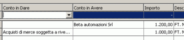 Inseriamo ora il Conto in dare (Acquisti). Se iniziamo a digitare la parola "Acquisti", viene intercettato il primo conto che inizia con questa parola.